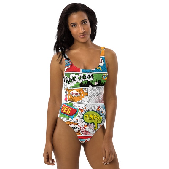 Comic Book Strip One Piece Swimsuit Pop Art Pattern Print Etsy